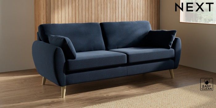 7.3.1 Buy Wilson 3 Seater Sofa Fine Chenille Easy Clean Dark Navy Blue Retro Tapered - Light from the Next UK online shop
