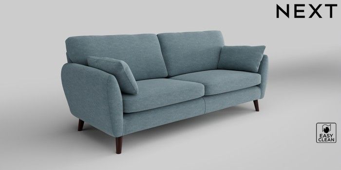 6.12.1 Buy Wilson 3 Seater Sofa Fine Chenille Easy Clean Mid Blue Retro Tapered - Dark Brown from the Next UK online shop Click here to use our accessible website