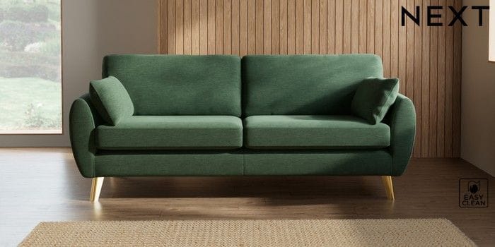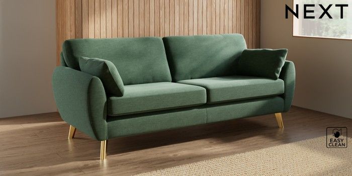 7.3.1 Buy Wilson 3 Seater Sofa Fine Chenille Easy Clean Mid Khaki Green Metal Tapered - Gold from the Next UK online shop Click here to use our accessible website