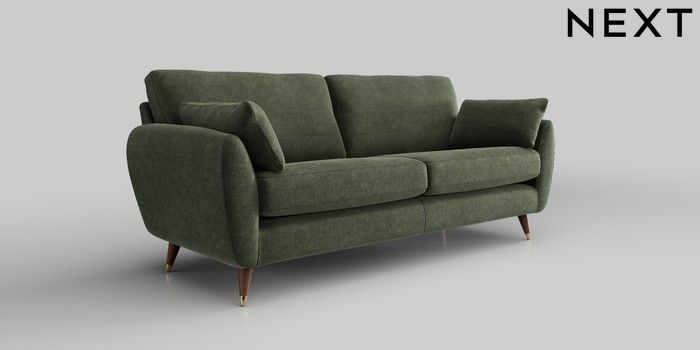 6.12.1 Buy Wilson 3 Seater Sofa Luxe Chenille Mid Green Low Retro Tapered Metal Cap - Mid from the Next UK online shop Click here to use our accessible website