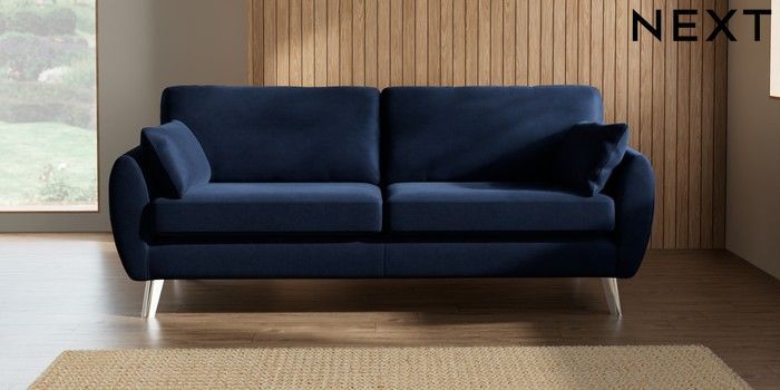 7.2.10 Buy Wilson 3 Seater Sofa Luxe Chenille Navy Blue Metal Tapered - Chrome from the Next UK online shop Click here to use our accessible website