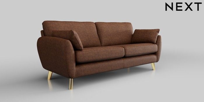 6.12.1 Buy Wilson 3 Seater Sofa Monza Faux Leather Easy Clean Chestnut Brown Metal Tapered - Gold from the Next UK online shop Click here to use our accessible website