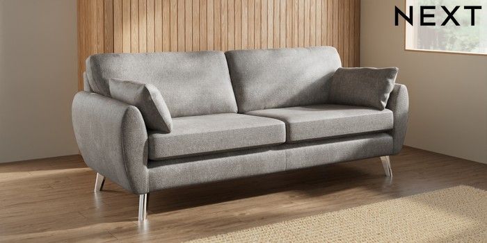 7.3.1 Buy Wilson 3 Seater Sofa Plush Chenille Light Grey Metal Tapered - Chrome from the Next UK online shop