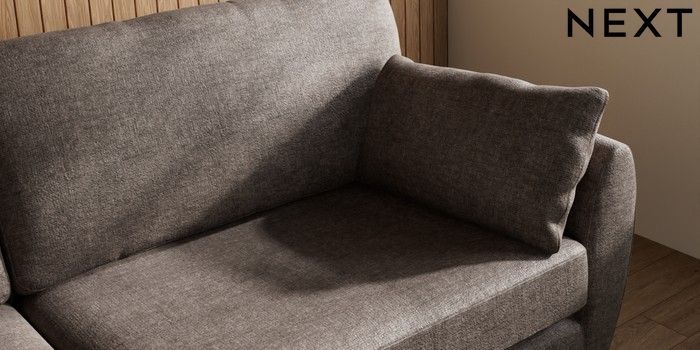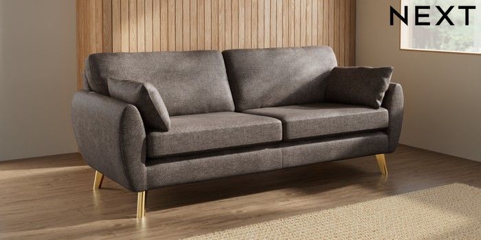 7.3.1 Buy Wilson 3 Seater Sofa Plush Chenille Mink Brown Metal Tapered - Gold from the Next UK online shop