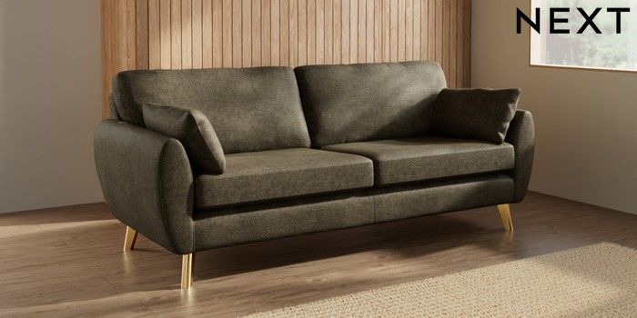 7.3.1 Buy Wilson 3 Seater Sofa Plush Chenille Moss Green Metal Tapered - Gold from the Next UK online shop
