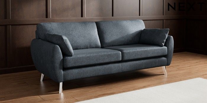 7.3.1 Buy Wilson 3 Seater Sofa Plush Chenille Slate Blue Metal Tapered - Chrome from the Next UK online shop