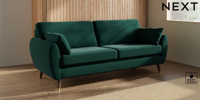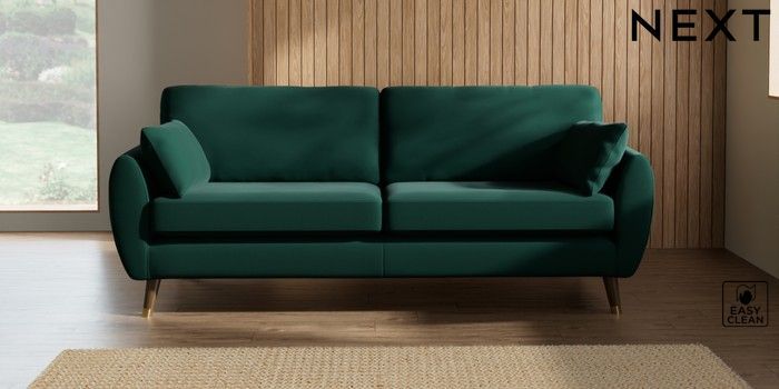 7.3.1 Buy Wilson 3 Seater Sofa Plush Velvet Easy Clean Bottle Green Low Retro Tapered Metal Cap - Mid from the Next UK online shop