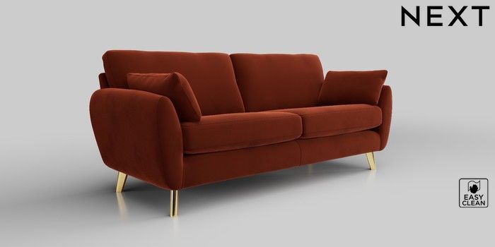 6.12.1 Buy Wilson 3 Seater Sofa Plush Velvet Easy Clean Ginger Orange Metal Tapered - Gold from the Next UK online shop Click here to use our accessible website