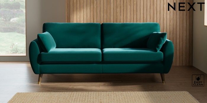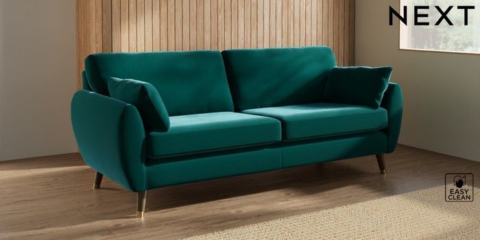 7.3.1 Buy Wilson 3 Seater Sofa Plush Velvet Easy Clean Juniper Green Low Retro Tapered Metal Cap - Mid from the Next UK online shop