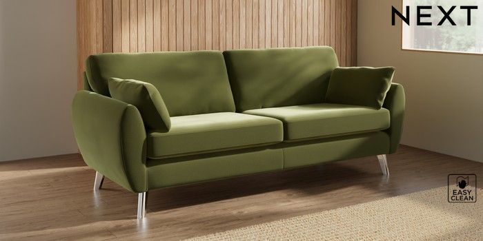 7.3.1 Buy Wilson 3 Seater Sofa Plush Velvet Easy Clean Mid Olive Green Metal Tapered - Chrome from the Next UK online shop Click here to use our accessible website