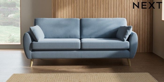 7.2.10 Buy Wilson 3 Seater Sofa Relaxed Linen Look Mid Blue Retro Tapered - Light from the Next UK online shop Click here to use our accessible website