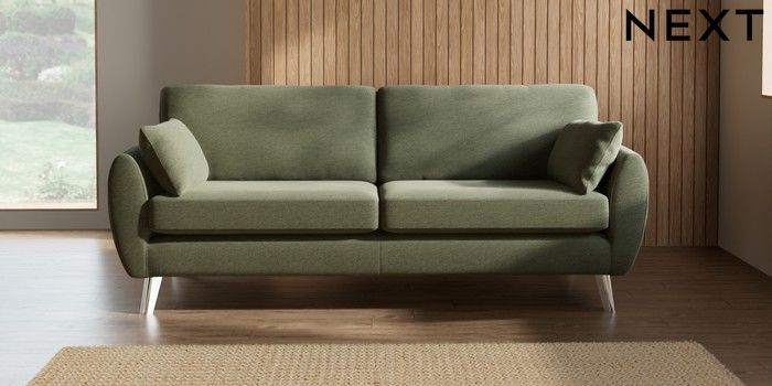 7.3.1 Buy Wilson 3 Seater Sofa Ripple Chenille Mid Moss Green Metal Tapered - Chrome from the Next UK online shop Click here to use our accessible website