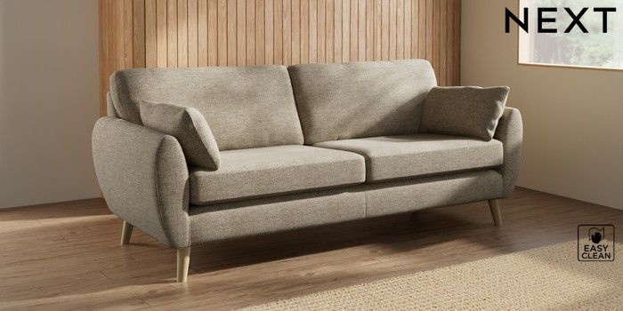 7.3.1 Buy Wilson 3 Seater Sofa Woven Chenille Easy Clean Mid Natural Retro Tapered - Light from the Next UK online shop