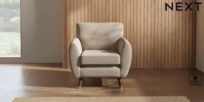 7.3.1 Buy Wilson Armchair Boucle Weave Easy Clean Dark Natural Low Retro Tapered Metal Cap - Mid from the Next UK online shop