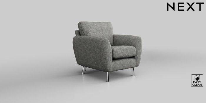 6.12.1 Buy Wilson Armchair Chunky Boucle Easy Clean Mid Grey Metal Tapered - Chrome from the Next UK online shop Click here to use our accessible website
