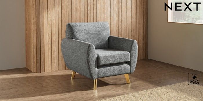 7.3.1 Buy Wilson Armchair Chunky Boucle Easy Clean Mid Grey Metal Tapered - Gold from the Next UK online shop Click here to use our accessible website