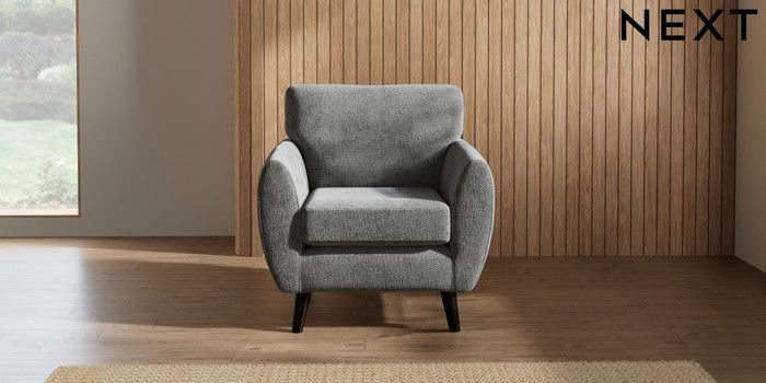 7.2.10 Buy Wilson Armchair Chunky Chenille Dark Grey Retro Tapered - Dark from the Next UK online shop Click here to use our accessible website