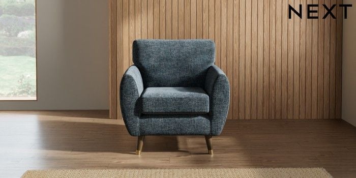 7.3.1 Buy Wilson Armchair Chunky Chenille Dark Navy Blue Low Retro Tapered Metal Cap - Mid from the Next UK online shop Click here to use our accessible website
