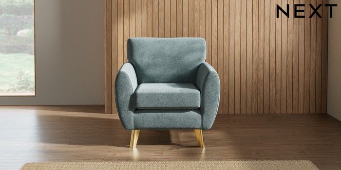 7.3.1 Buy Wilson Armchair Chunky Chenille Light Teal Green Metal Tapered - Gold from the Next UK online shop Click here to use our accessible website