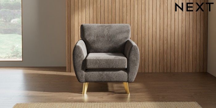 7.3.1 Buy Wilson Armchair Chunky Chenille Mink Brown Metal Tapered - Gold from the Next UK online shop