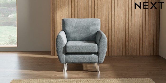 7.3.1 Buy Wilson Armchair Chunky Weave Mid Blue Metal Tapered - Chrome from the Next UK online shop