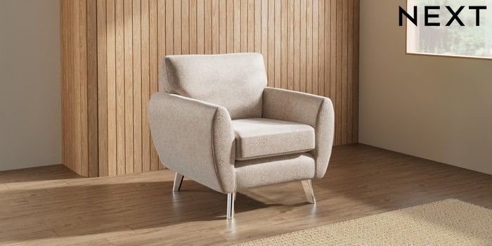 7.3.1 Buy Wilson Armchair Cotswold Chenille Light Natural Metal Tapered - Chrome from the Next UK online shop Click here to use our accessible website
