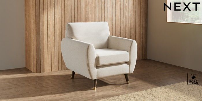 7.3.1 Buy Wilson Armchair Fine Chenille Easy Clean Oyster Low Retro Tapered Metal Cap - Mid from the Next UK online shop