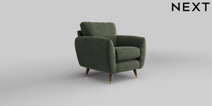 6.12.1 Buy Wilson Armchair Luxe Chenille Mid Green Low Retro Tapered Metal Cap - Mid from the Next UK online shop Click here to use our accessible website