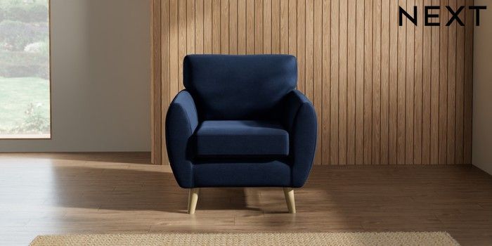 7.2.10 Buy Wilson Armchair Luxe Chenille Navy Blue Retro Tapered - Light from the Next UK online shop Click here to use our accessible website