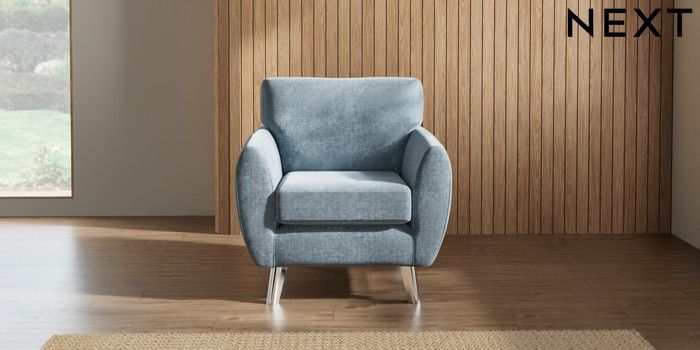 7.2.6 Buy Wilson Armchair Plush Chenille Light Blue Metal Tapered - Chrome from the Next UK online shop Click here to use our accessible website