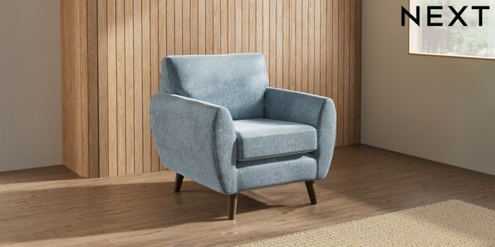 7.3.1 Buy Wilson Armchair Plush Chenille Light Blue Retro Tapered - Mid from the Next UK online shop