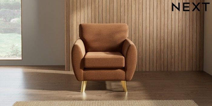 7.3.1 Buy Wilson Armchair Ripple Chenille Mid Rust Brown Metal Tapered - Gold from the Next UK online shop Click here to use our accessible website