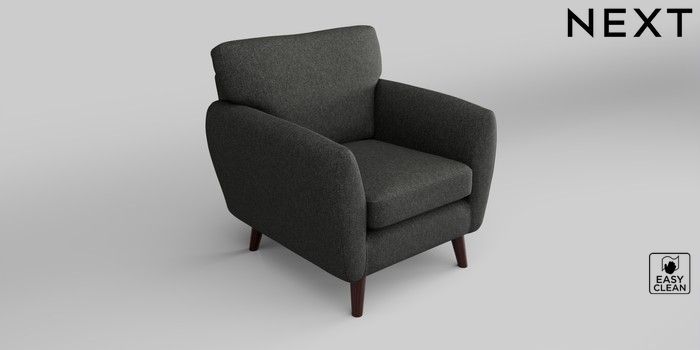 6.12.1 Buy Wilson Armchair Tweedy Blend Easy Clean Charcoal Grey Retro Tapered - Dark Brown from the Next UK online shop Click here to use our accessible website