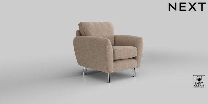 6.12.1 Buy Wilson Armchair Tweedy Blend Easy Clean Light Dove Natural Metal Tapered - Chrome from the Next UK online shop Click here to use our accessible website