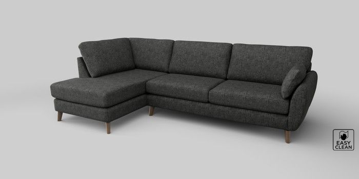 6.12.1 Buy Wilson Large Corner Chaise - Left Hand Boucle Weave Easy Clean Charcoal Grey Retro Tapered - Mid from the Next UK online shop Click here to use our accessible website