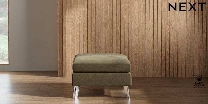 7.3.1 Buy Wilson Footstool Fine Chenille Easy Clean Dark Moss Green Metal Tapered - Chrome from the Next UK online shop Click here to use our accessible website