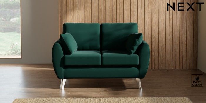 7.3.1 Buy Wilson 2 Seater Small Sofa Plush Velvet Easy Clean Bottle Green Metal Tapered - Chrome from the Next UK online shop Click here to use our accessible website