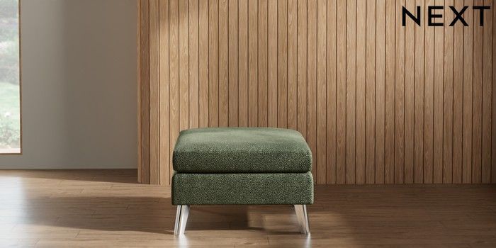 7.3.1 Buy Wilson Footstool Boucle Chenille Dark Moss Green Metal Tapered - Chrome from the Next UK online shop Click here to use our accessible website