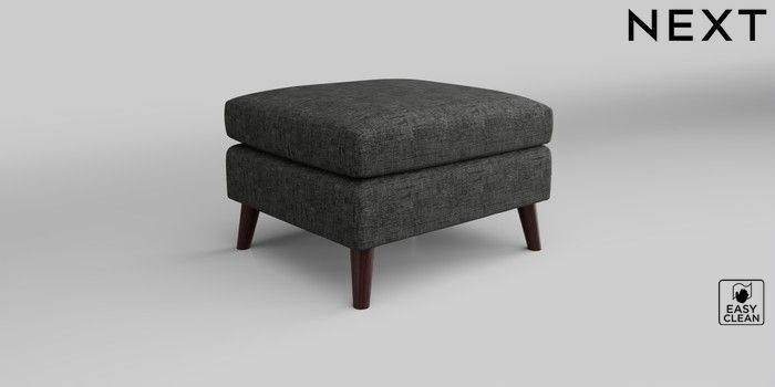6.12.1 Buy Wilson Footstool Boucle Weave Easy Clean Charcoal Grey Retro Tapered - Dark Brown from the Next UK online shop Click here to use our accessible website