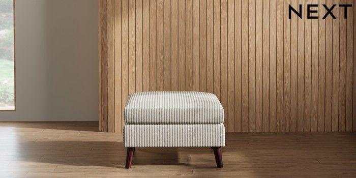 7.2.10 Buy Wilson Footstool Chenille Stripe Moss Green Retro Tapered - Dark Brown from the Next UK online shop Click here to use our accessible website