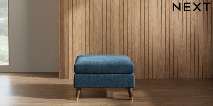 7.3.1 Buy Wilson Footstool Cotswold Chenille Dark Blue Low Retro Tapered Metal Cap - Mid from the Next UK online shop Click here to use our accessible website