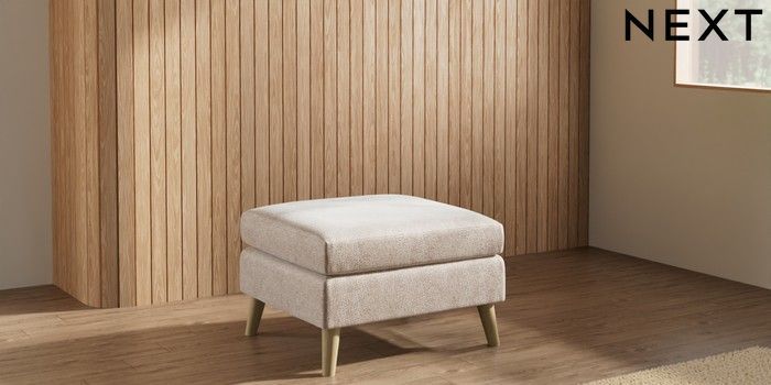 7.3.1 Buy Wilson Footstool Cotswold Chenille Light Natural Retro Tapered - Light from the Next UK online shop