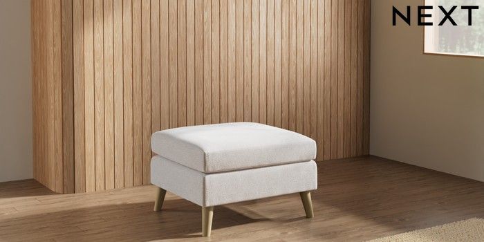 7.3.1 Buy Wilson Footstool Cotswold Chenille Oyster Retro Tapered - Light from the Next UK online shop