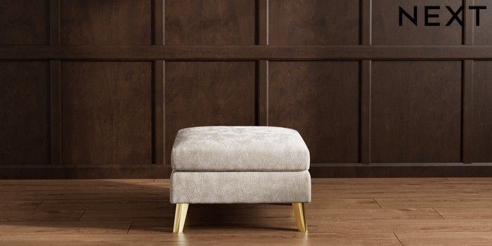 7.3.1 Buy Wilson Footstool Distressed Velour Mid Natural Metal Tapered - Gold from the Next UK online shop Click here to use our accessible website