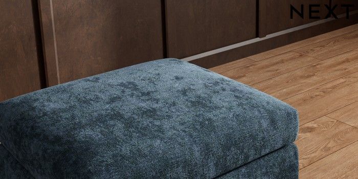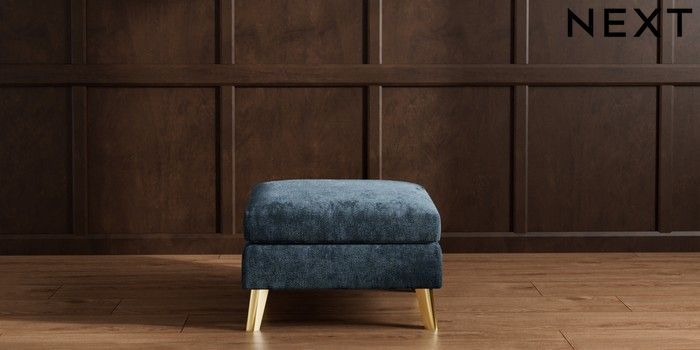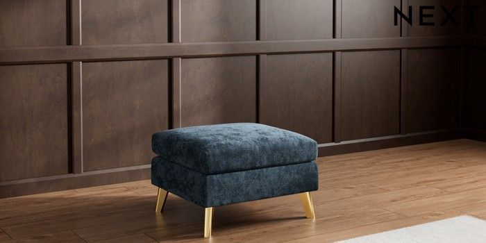 7.3.1 Buy Wilson Footstool Distressed Velour Midnight Blue Metal Tapered - Gold from the Next UK online shop