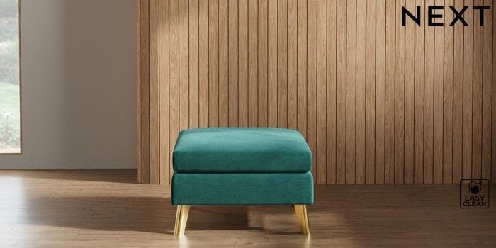 7.3.1 Buy Wilson Footstool Fine Chenille Easy Clean Dark Juniper Green Metal Tapered - Gold from the Next UK online shop Click here to use our accessible website