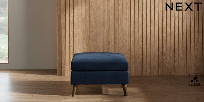 7.2.10 Buy Wilson Footstool Fine Chenille Easy Clean Dark Navy Blue Retro Tapered - Mid from the Next UK online shop Click here to use our accessible website