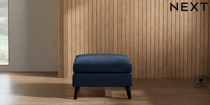 7.2.10 Buy Wilson Footstool Fine Chenille Easy Clean Dark Navy Blue Retro Tapered - Dark from the Next UK online shop Click here to use our accessible website