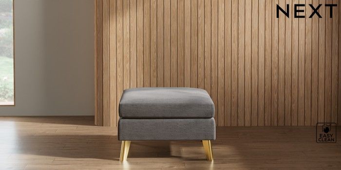 7.3.1 Buy Wilson Footstool Fine Chenille Easy Clean Dark Smoke Grey Metal Tapered - Gold from the Next UK online shop Click here to use our accessible website
