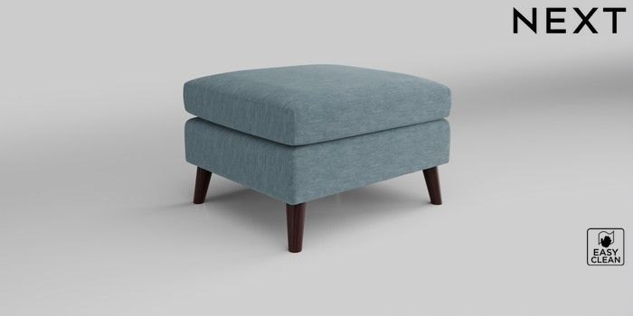 6.12.1 Buy Wilson Footstool Fine Chenille Easy Clean Mid Blue Retro Tapered - Dark Brown from the Next UK online shop Click here to use our accessible website